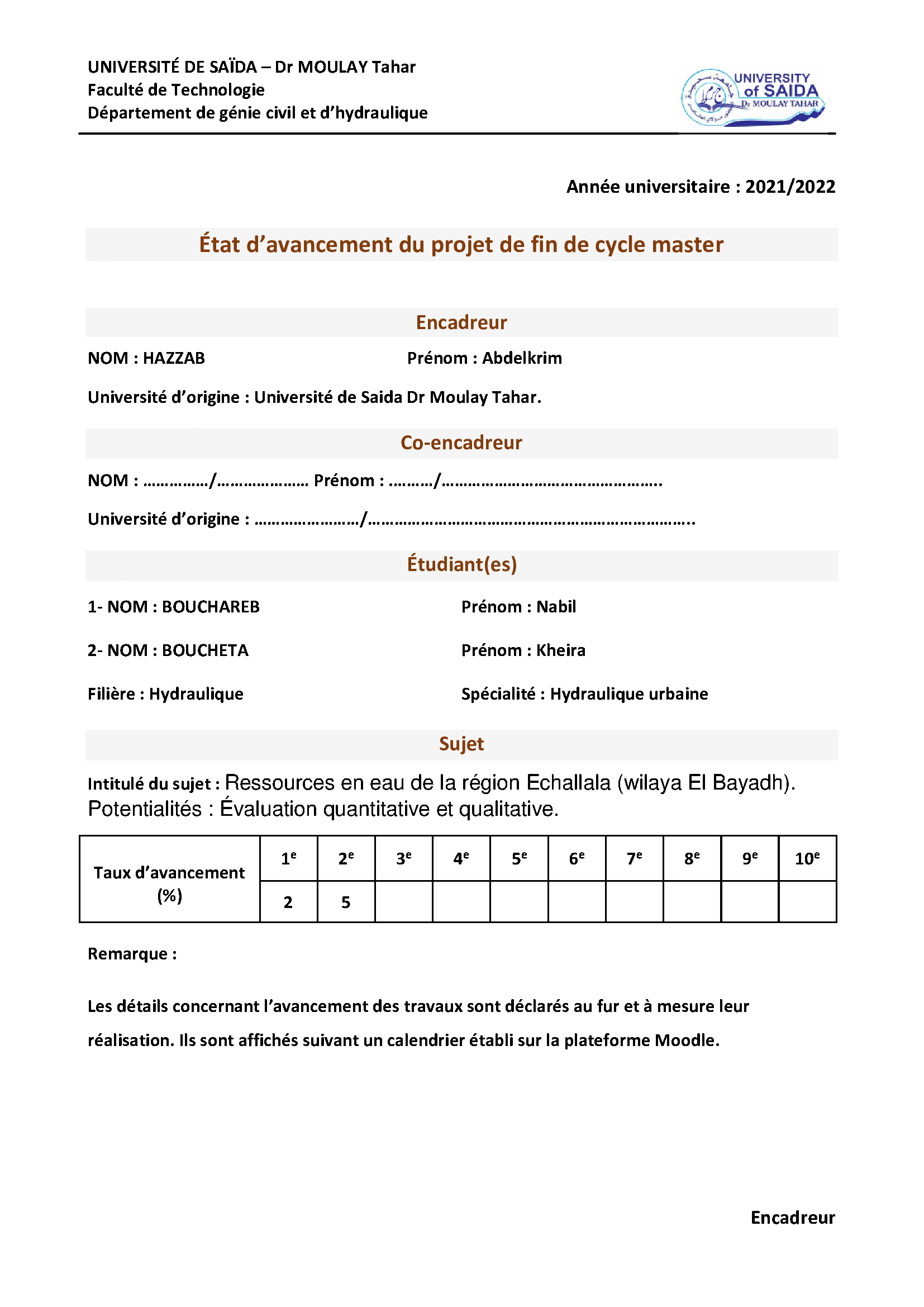L’étude propose l'analyse des potentialités en eau des aquifères de la région d'Echallala (Wilaya d’el-bayadh).