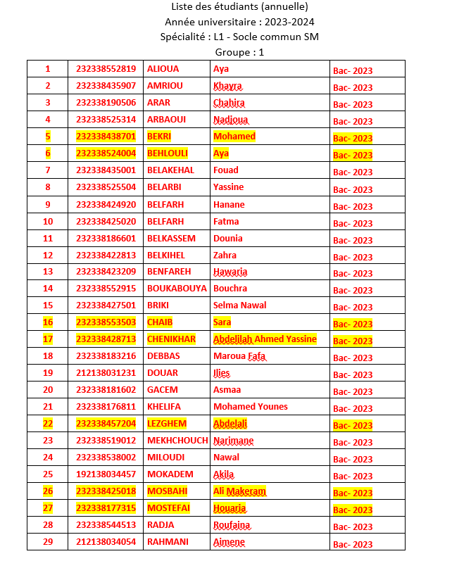 الكليات / كلية العلوم / قسم الرياضيات / Année Universitaire 2023-2024 / Licence 23-24 / L1 SCMI Mathématiques 23-24