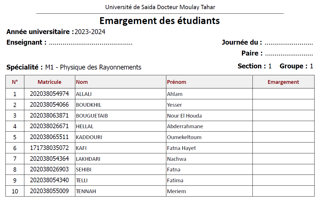 الكليات / كلية العلوم / قسم الرياضيات / Année Universitaire 2023-2024 / Master 23-24 / M2 ASSPA 23-24 / Encadrements 2023-2024