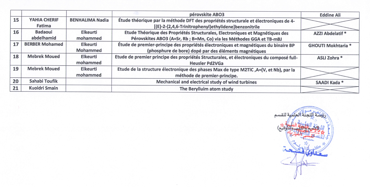 الكليات / كلية العلوم / قسم الرياضيات / Année Universitaire 2023-2024 / Master 23-24 / M2 ASSPA 23-24 / Encadrements 2023-2024