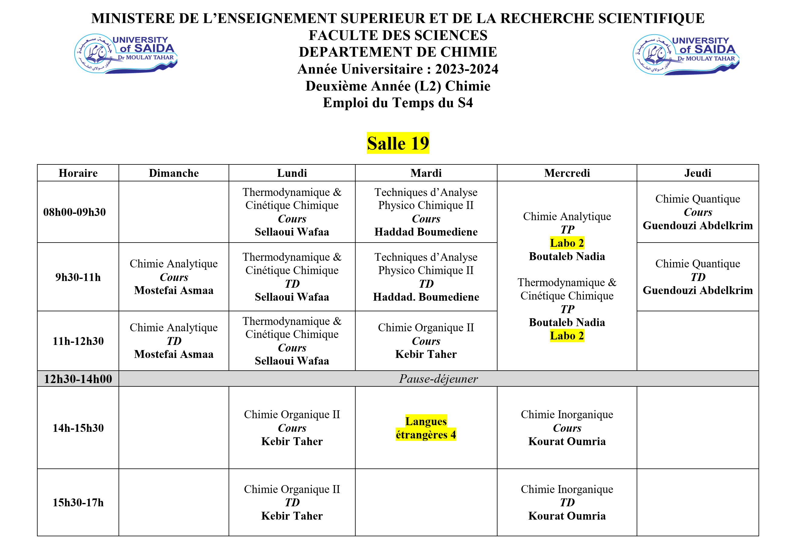 الكليات / كلية العلوم / قسم الكيمياء / الدروس / السنة الجامعية 2023-2024 / السداسي الفردي / ليسانس / السنة الثانية جذع مشترك كيمياء / Planning des examens finaux du semestre S3