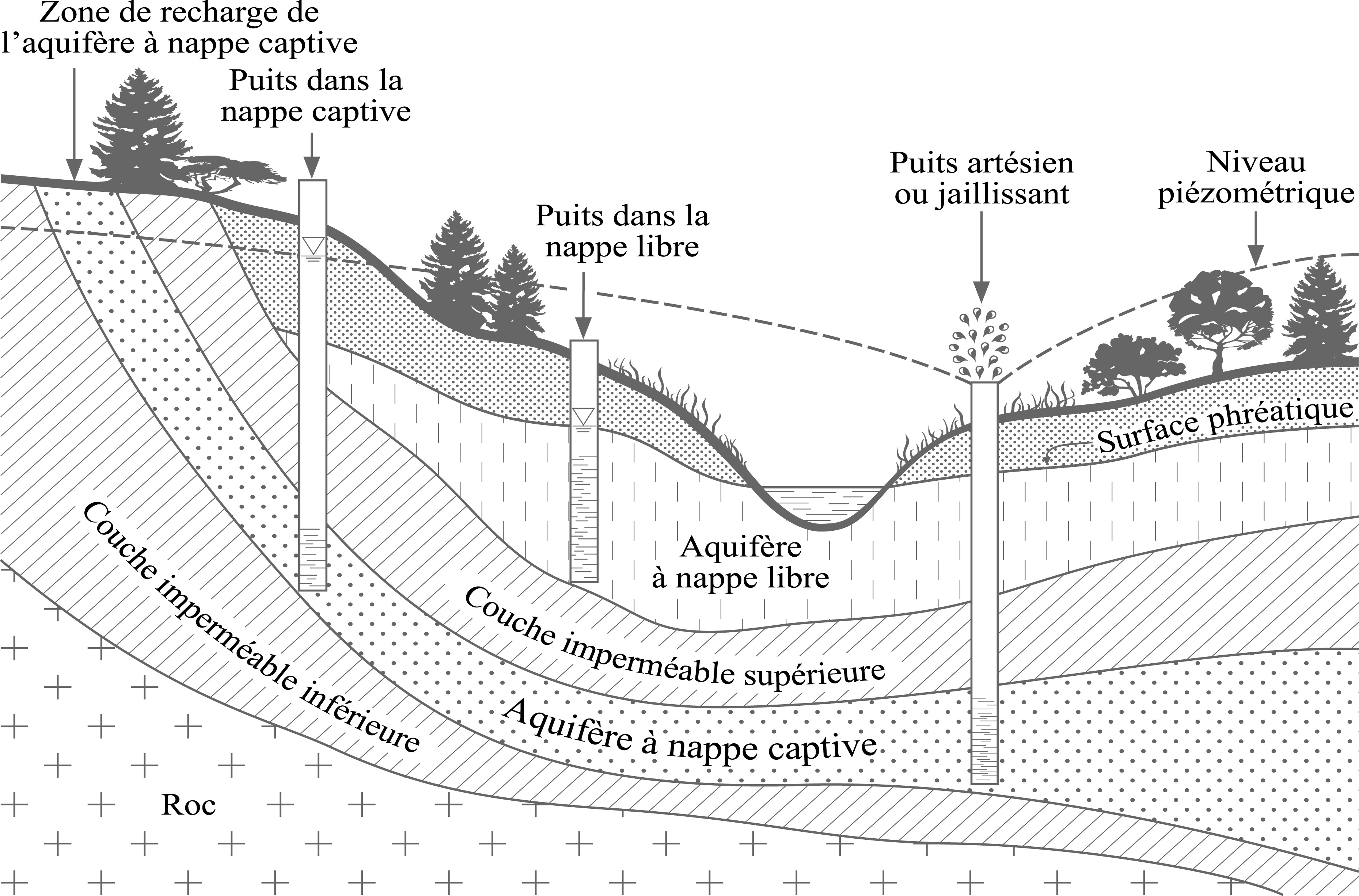Mots clés : Aquifères, Hydrogéologie, pompage, essai, perméabilité transmissivité, emmagasinement, puits, piézomètre, Darcy, Dupuit, Thiem, ...