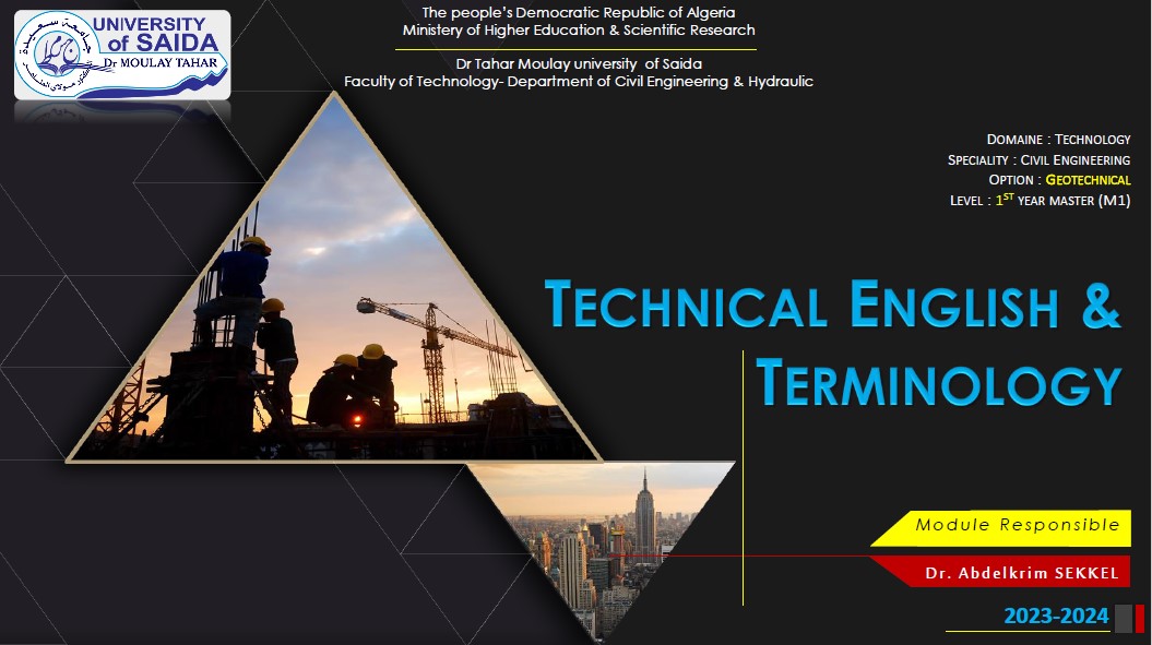 Il est vivement recommandé au responsable de la matière de présenter et expliquer à la fin de chaque séance (au plus) une dizaine de mots techniques de la spécialité dans les trois langues (si possible) anglais, français et arabe.
