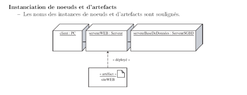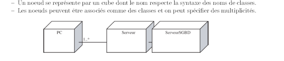 aux supports physiques (serveurs, routeurs…) ainsi que la répartition des artefacts logiciels (bibliothèques, exécutables…) sur ces nœuds. C’est un véritable réseau constitué