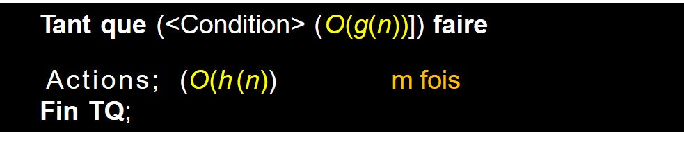 La complexité de la boucle est : m * Max(g(n),f (n)) où m est le nombre d’itérations exécutées par la boucle