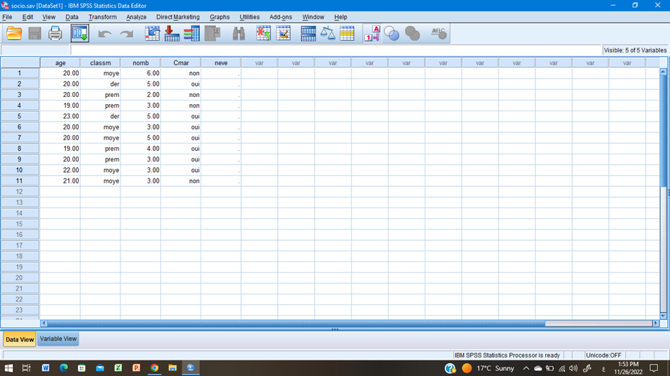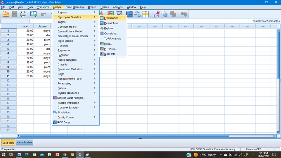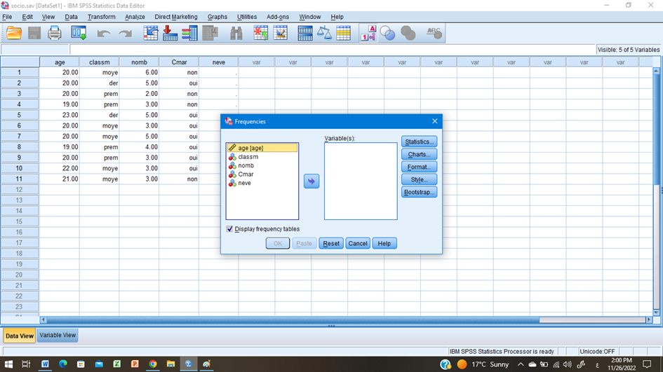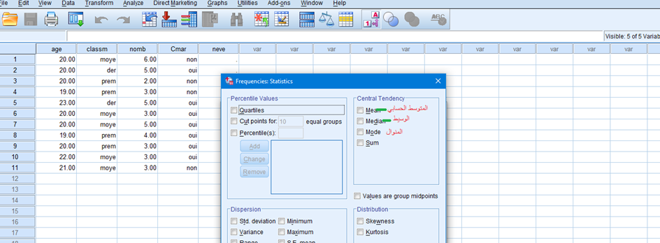 ثم نختار المتغير المراد حساب مقاييس النزعة المركزية الخاصة به مع مراعاة ان يكون المتغير كميا و في هذا المثال اخترنا متغير الغمر