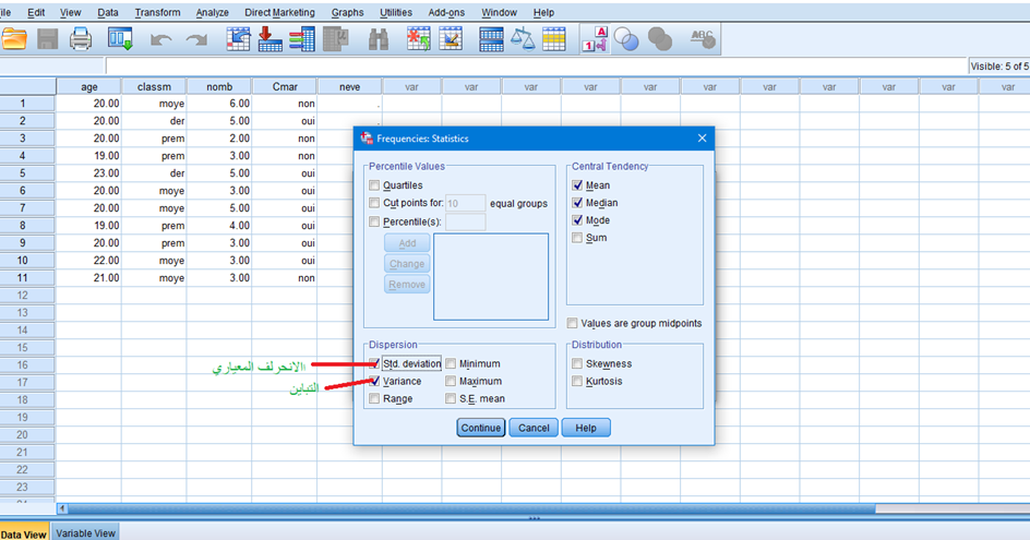 و بنفس الخطوات بالنسبةلمقاييس التشتت