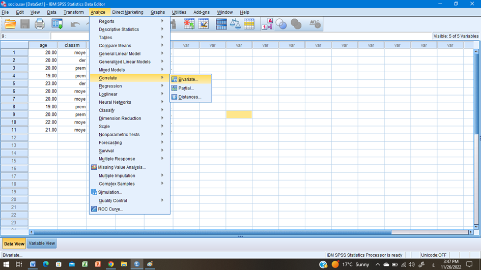كما هو موضج correlate نجد خيار analyse و بشكل أخر نفس خيارات