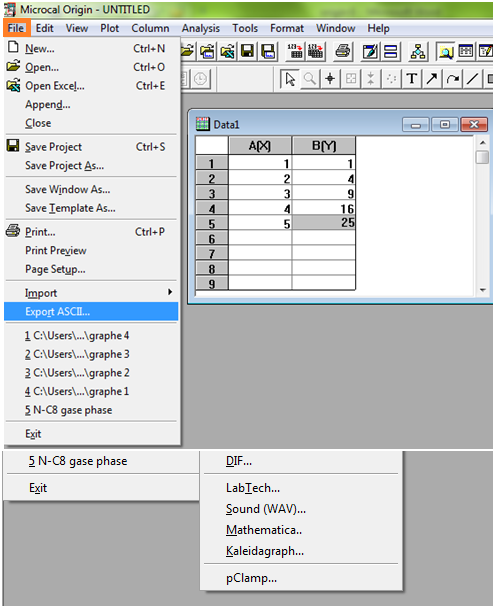 Dans ce cas on doit exporter les données de l’origin vers un autre fichier pour se faire on doit
