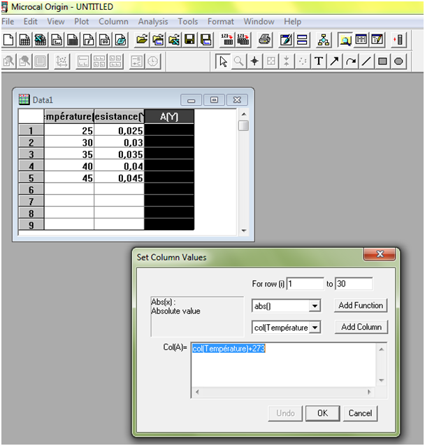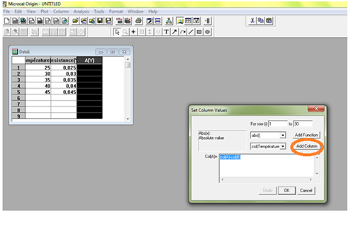 la troisième colonne est sélectionné et prête pour recevoir les les résultats des calculs