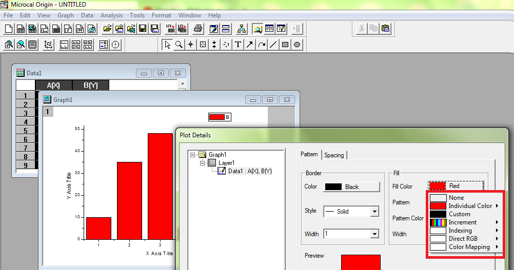 Pour changer les couleurs de l'histogramme on double clique sur l'histogramme et on obtient