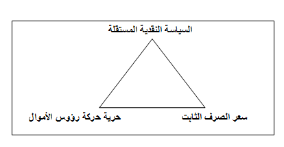 و هنا يتحقق المثلث المستحيل لـ "مندل"، حيث لا يمكن تحقق الأهداف الثلاثة التالية في آن واحد: سعر صرف ثابت، حرية حركة رؤوس الأموال و استقلالية السياسة النقدية (نعني بالاستقلالية خدمة أهداف البنك المركزي المحددة مسبقا و ليس السياسة النقدية الناتجة عن ردة فعل).