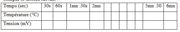- un thermocouple NiCr-Ni. Couleurs dans le montage (vert : Nickel « Ni » ; Rouge : alliage Nickel Chrome « NiCr » ; Blanc : Cuivre « Cu » pour le fil conducteur)
