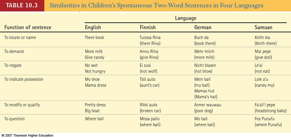 The following table can be a good illustration about the idea that almost all children around the world use language similarly: