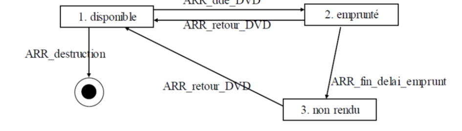 Un objet de la classe « DVD » a les états suivants : disponible, emprunté, non rendu.