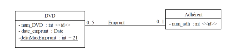L’état « non rendu» est défini par date_emprunt > =date_jour - delaiMaxEmprunt et l’objet a une association de type « Emprunt ».