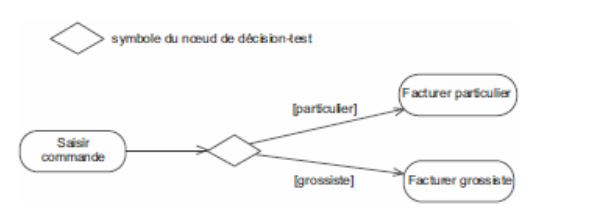 Nœud de test-décision Un nœud de test-décision permet de faire un choix entre plusieurs flots sortants en fonction des conditions de garde de chaque flot.