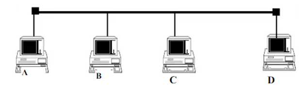 (speed = 10 Mbits/s, propagation time = 200,000 km/s) whose configuration is as follows(distance AB=BC=CD=500m).