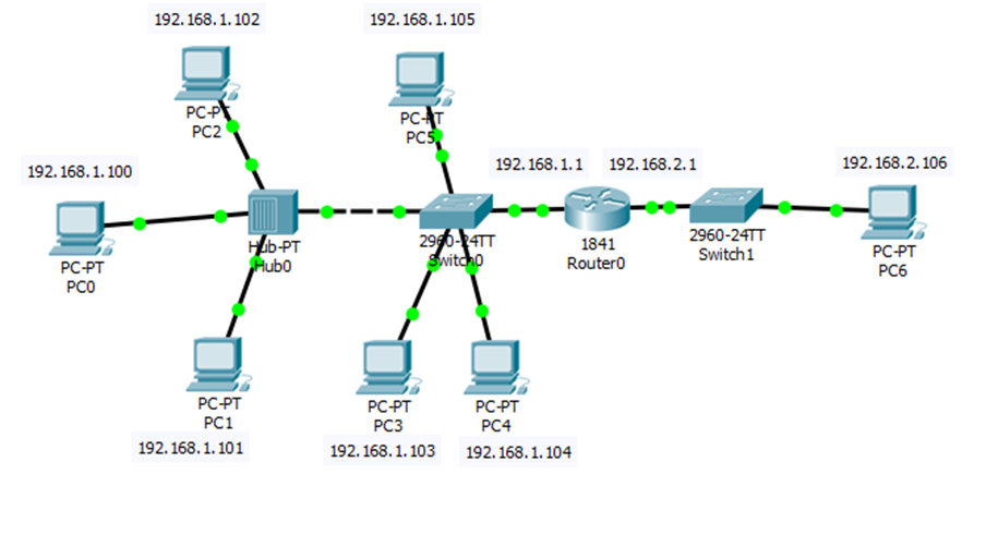 3. Send a broadcast Ping request from PC3 to all the stations of the network 192.168.1.0. Explain what happened on the network.