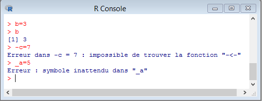 ملاحظة: برنامج R مثل بعض البرامج حساس للأحرف الكبيرة و الصغيرة فمثلا A يختلف عن .a