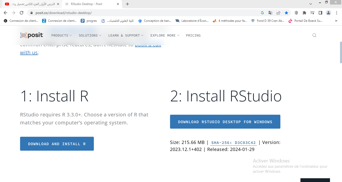 1- تنزيل و تثبيت برنامج R و RStudio: