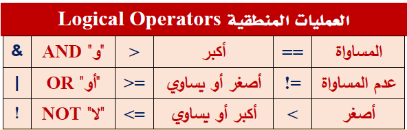 ملاحظة: للمتغير المنطقي أحد القيمتين TRUE أو FALSE واختصارا Tو F.