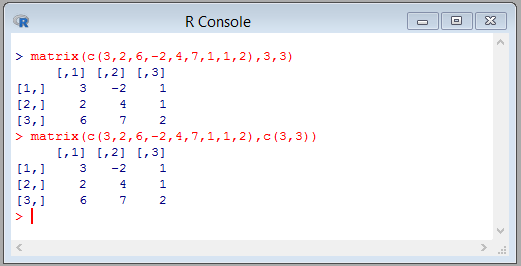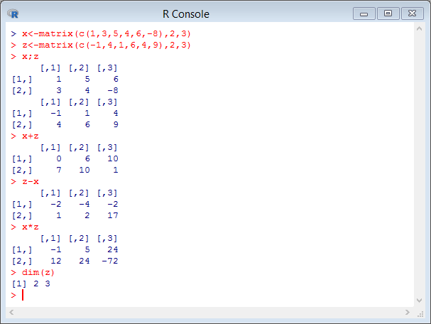 x<-matrix(c(1,3,5,4,6,-8),2,3)