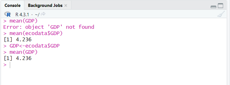 لاستعمال أي متغير كأن نمثله برسم بياني أو نجري إحصاءات عليه فيجب دائما الإشارة إلى قاعدة البيانات الموجود فيه بعد رمز "الدولار"، و لتفادي ذلك يمكن من البداية استخراجه من قاعدة البيانات: