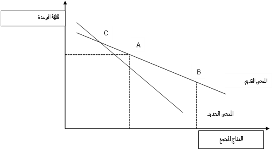 يرتكز منحنى أثر التجربة حول فكرة أن المؤسسة تكون تنافسية إذا حققت التكاليف الأدنى وبالتالي فهي تحاول الإنتاج بكثرة حيث تكتسب المهارة )المعرفة العملية( وتحقق اقتصاديات الحجم والتي تسمح بتقليص التكاليف وعليه فبانخفاض التكاليف ينخفض مستوى المنحنى من المنحنى القديم إلى المستوى الجديد ويظهر ذلك بيانيا كما يمي: