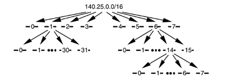 Among these 8 subnetworks, network number 1 is again divided into 32 subnetworks and network number 6 into 16 subnetworks. Â