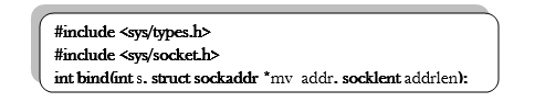 int bind(int s, struct sockaddr *my_addr, socklent addrlen);