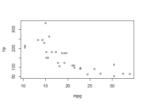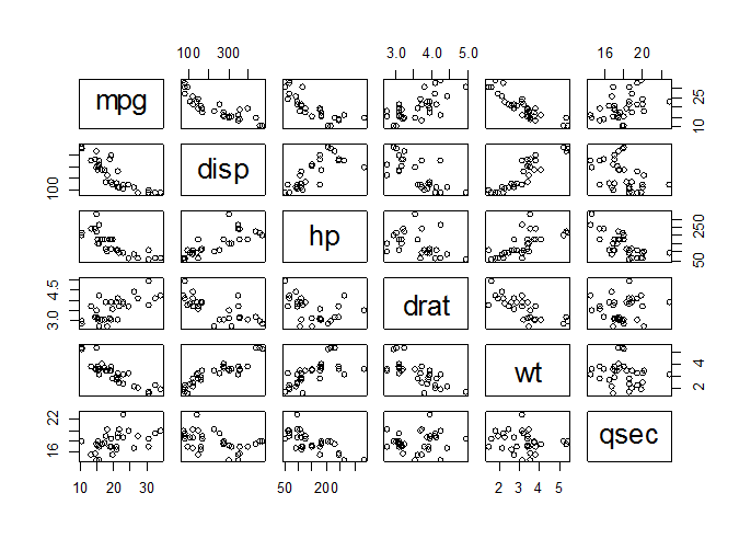 (نختار المتغيرات الكمية المتصلة فقط (mpg-disp-hp-drat-wt-qsec)):