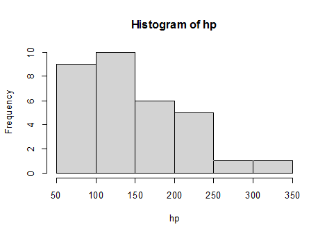 الملاحظ على الشكل أن هناك ميل سالب (على اليسار) للمتغير hp و من المحتمل أنه لا يتبع التوزيع الطبيعي.