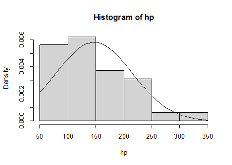 curve(dnorm(x,mean(hp),sd(hp)),add=T)