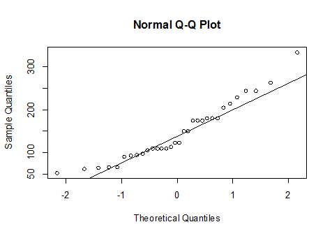 الملاحظ: أن النقاط ليست على الخط و من المحتمل أنها لا تتبع التوزيع الطبيعي.