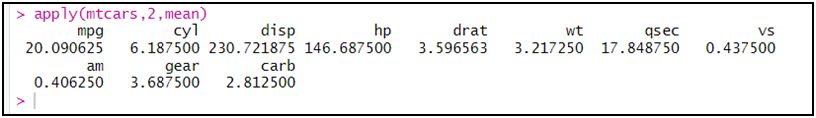 دالة apply: استخراج إحصاءات لعدة متغيرات، حساب المتوسط لكل الأعمدة (المتغيرات):