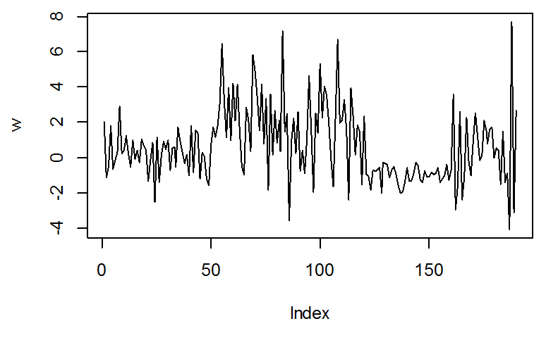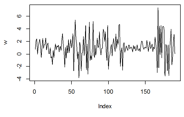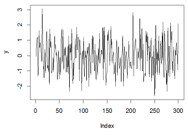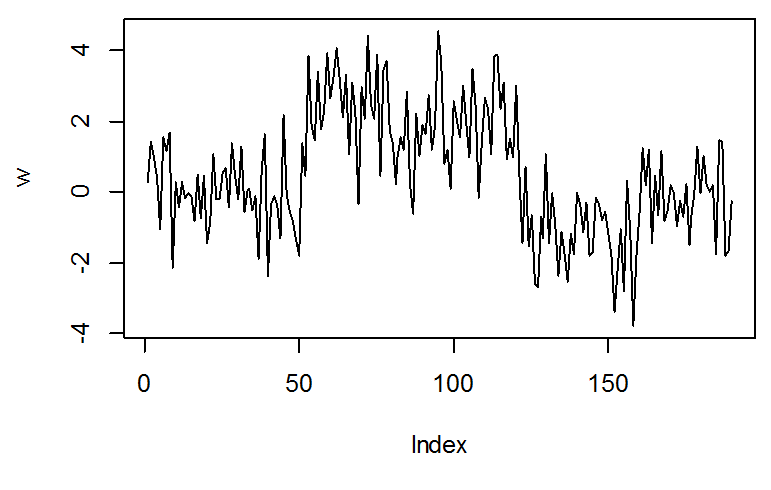 الملاحظ على السلسلة على أنها تملك متوسط معدوم و تباين ثابت، و بالتالي احتمال أن تكون سحابة بيضاء.