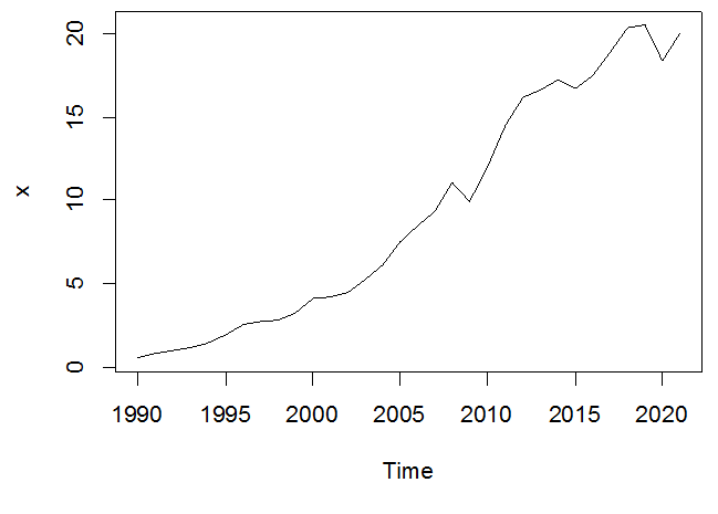 -التعريف بالسلسلة الزمنية: مثلا سلسلة زمنية سنوية x تبدأ سنة 1990: