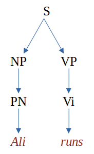 Ali runs ==> PN runs ==> PN Vi ==> NP Vi ==> NP VP==> S