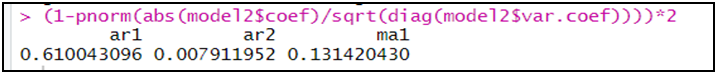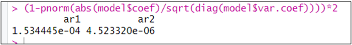 (1-pnorm(abs(model2$coef)/sqrt(diag(model2$var.coef))))*2