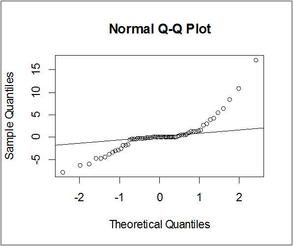 نلاحظ عدم تطابق النقاط مع الخط و بالتالي هناك احتمالية كبيرة أن سلسلة البواقي لا تتبع التوزيع الطبيعي.