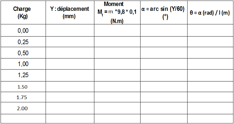 - Déterminer pour chaque matériau le module d'élasticité transversal en se basant sur la relation Mt=G.θ.I.