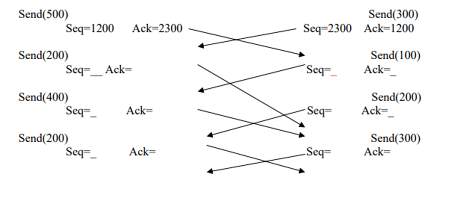 Complete the sequence and acknowledgment numbers: