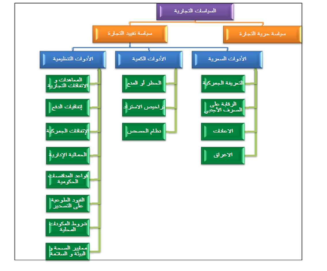 الشكل رقم (1): أنواع و أدوات السیاسة التجاریة الدولیة.