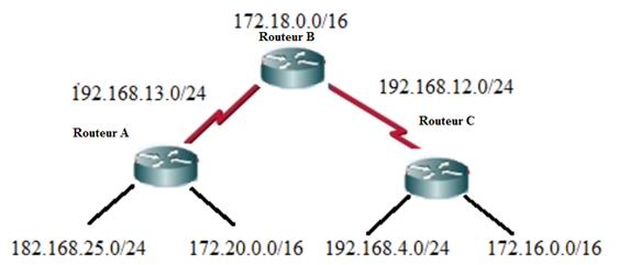 1- If no additional routing is configured on routers A, B, C, what will be the result?
