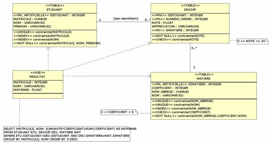 Dictionnaire de stéréotypes : «TABLE», «VUE», «PK», «FK», «PFK», «ARTIFICIELLE», «NOT NULL», «UNIQUE», «CHECK», «INDEX», «TRIGGER»